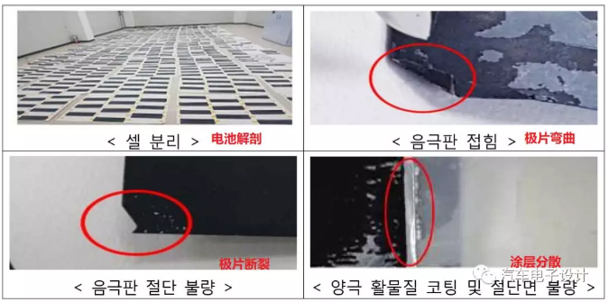 通過電池拆解分析確認電池生產(chǎn)過程中存在一些的缺陷,確認許多事故使用同一工廠同一批次生產(chǎn)的電池。結果發(fā)現(xiàn)這些同批次的電池里面極片上活性物質(zhì)的涂層不良等。